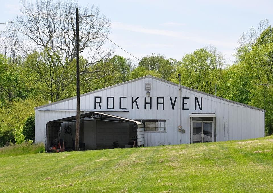 Nice 3 br 2 bath home on 3.6 acres mostly fenced. The family room has a fireplace, there is an extra office room, rear deck and mature trees. 2.5 car garage, large building formerly an auction house. Lots of paved parking. Rock Haven bldg has kitchen & 2 bathrooms. There are 2 large doors for vehicle storage etc