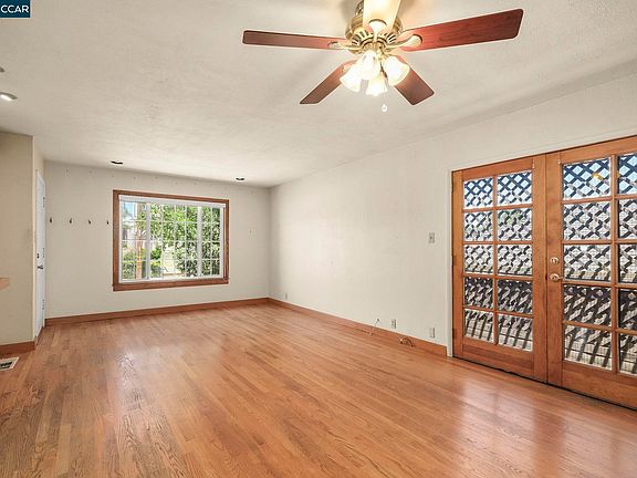 Charming 1951 bungalow with 942 Sq. Ft. Plus large 2 room basement/bonus area which is not included in the square footage. Some dual pane windows upstairs. The living room and dining area combo has a built-in oak bookshelf, recessed lighting, hardwood floor, and a French door leading to the side yard deck. The kitchen has vinyl floors, wood cabinets, tile countertop, breakfast bar, microwave oven, and a cozy kitchen nook. Off the kitchen is a bonus laundry room. There are 2 bedrooms - One bedroom has a built-in oak cabinet and hardwood floors; the other bedroom is carpeted. There is a upper and lower deck system leading down to the wonderful backyard. The upper deck has a view of the hills while the lower deck is shaded and a great place to relax. The home has an attached one car garage. The home is equipped with a central heating and air conditioning system. The 942 square footage represents the upstairs area only.