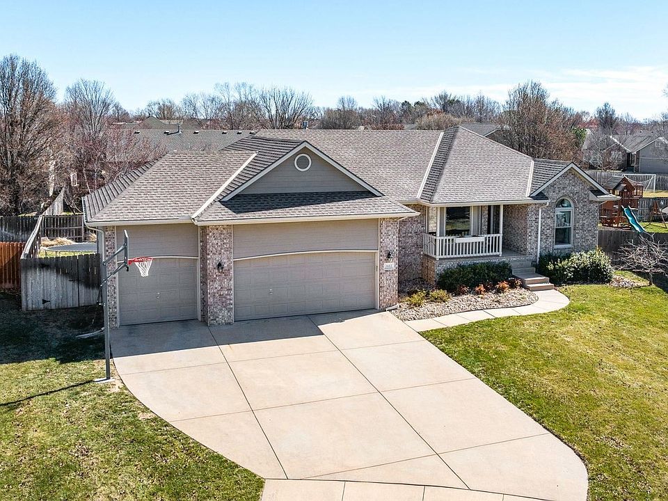 Nestled on a quiet cul-de-sac in the desirable west Wichita Aberdeen neighborhood, this charming home is in the Maize School District. This home features 5 bedrooms, 3 bathrooms, and over 2,530 square feet of living space. Walking inside, you’ll instantly notice the elegant luxury plank flooring that seamlessly unifies the entire home, while the clean white cabinets provide a modern yet welcoming feel. The kitchen includes a large farmhouse sink and a window that offers a perfect view of guests arriving, family playing, or birds in the yard. The mid-level walkout provides convenience, allowing easy access to the deck while inviting natural light into the upper windows. The home also includes newer windows, and the HVAC system is only 5 years old. Enjoy the best of both worlds with an open and spacious layout featuring cozy spots for everyday moments. Don’t miss this opportunity to own a beautiful, well-maintained home in a wonderful community.
