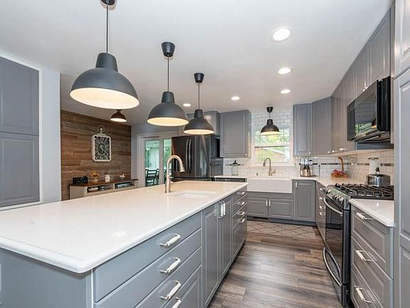 This beautiful house has been transformed to an updated home. The kitchen, baths and laundry room have all been tastefully updated and as you enter into home you will have the feeling you are in a newer home. The kitchen was totally redone featuring new cabinets, SS appliances, center island featuring prep sink, with quartz countertops which is a chefs dream. From the updated kitchen you are a few steps from living room, spacious updated laundry room or out into large 3 season room. The master suite has been transformed as well with updated full bath & walk-in closet. The additional 2 bedrooms and updated full bath complete the first floor. The LL has been transformed into large family room with Fireplace and spacious bedroom w/ 2 large closets. The attached garage has 2 bays that are 24x20 and an additional 1 bay which is 24X15 which gives you a great 3 car attached garage that will be great for the mechanic in the family. A complete list of updates are available. Room sizes and sq. ft. is approx. All room sizes and sq feet are approximate.