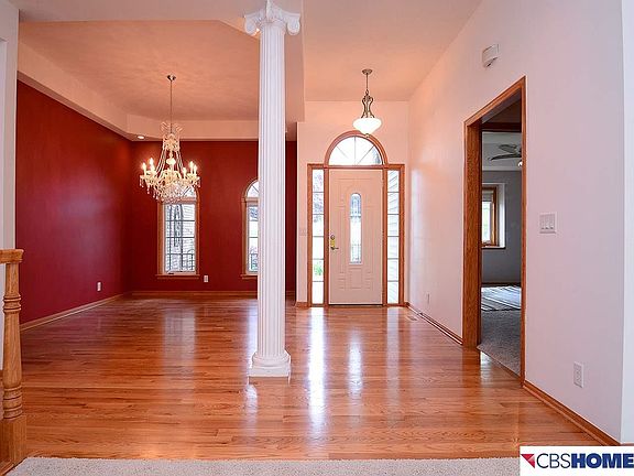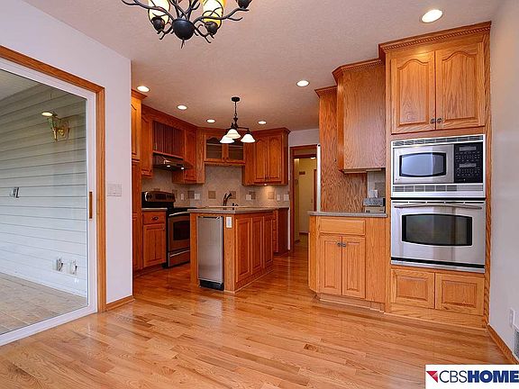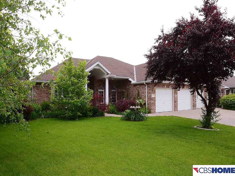 Large ranch on corner lot. Custom built, beautiful flowers all around. Kitchen custom features include range plus a convection wall oven and microwave, built in large ice maker, solid surface countertops. Master bedroom w/beautiful bath with whirlpool, double sinks. Lower level offers two large bedrooms and tons of other space. Large closets throughout. Covered deck overlooking landscaped yard and walking trail and park. Conveniently located to Offutt AFB and Kennedy Freeway.