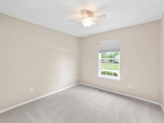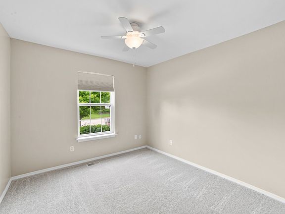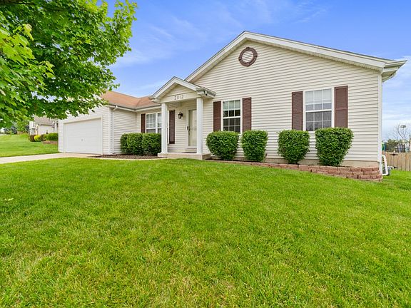 This charming ranch on a quiet street is move-in ready! Open floor plan with vaulted ceilings, white six panel doors, and fresh paint throughout. Updated laminate hardwood floors. Professionally painted kitchen cabinets, gas stove and plenty of options for dining space. Master suite with walk in closet and full bath has a separate tub and shower. Partially Finished Basement is great space for a movie room, playroom or home office. The vinyl exterior with enclosed soffits is low maintenance. Covered 24x12 patio leads to level, landscaped and fenced-in yard. Easy access to shopping, dining, and Hwys 40/70/364. This home is super clean and Move In Ready!
