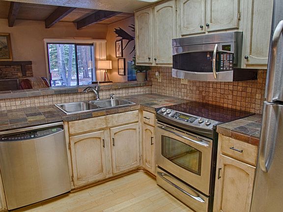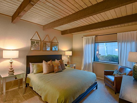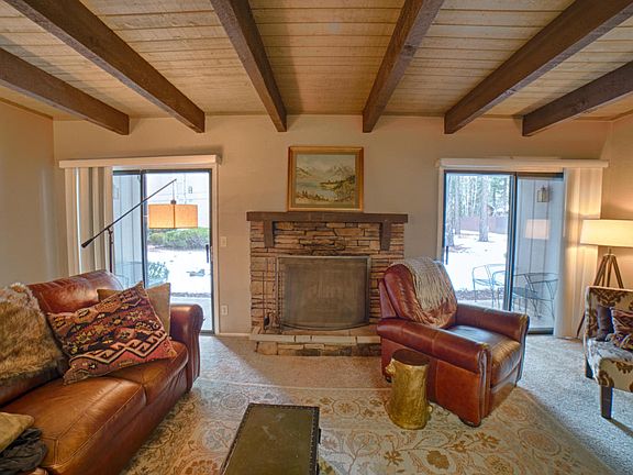 Absolutely STUNNING condo located in the highly sought after Sports Village. GROUND floor unit, tucked in the back of the complex, PRIME location. Furnished: everything you need. This unit boasts neutral paint tones throughout, neutral colored carpet, stacked stone wood burning fireplace, Bath #1 features quartz countertops, wood-look tile floor, Bath #2 features slate countertops and upgraded mirror. Wood ceiling detail throughout. Wood floors in kitchen with sealed slate countertops. Washer/Dryer in Pantry. Beautiful furniture would please the most high-end decorator, much of it from West Elm/Bassett. Sleeps 9 comfortably plus futon couch to sleep 1 more. Beautiful views of the common area. Incredible opportunity on this rare updated/groundfloor unit. Owner married to listing agent.