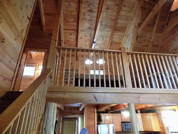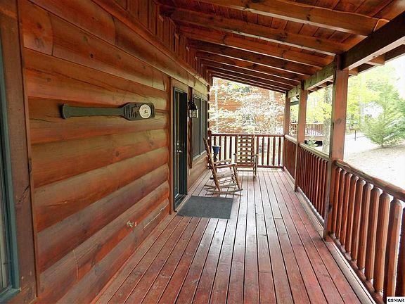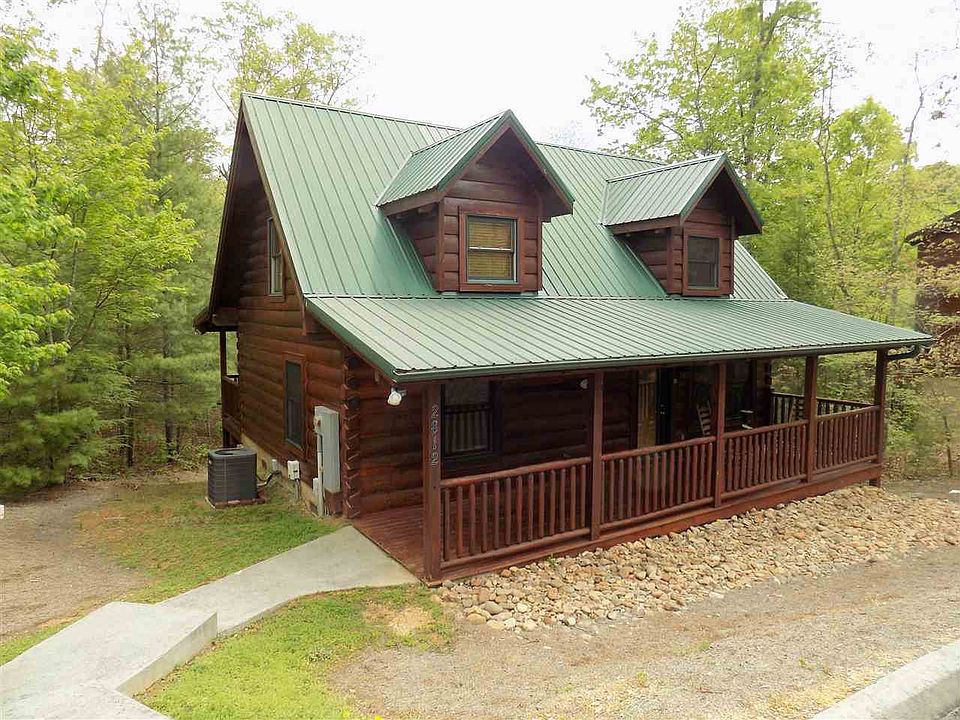 Carpe' Diem is a cozy, comfortable log cabin with amenities that will make it your home away from home. While located less than 5 miles from the Pigeon Forge parkway and the entrance to the Great Smoky Mountain National Park, it still offers quite, serene surroundings for the relaxation that you crave. Great Rental history. Two large, private bedrooms with private baths-- one on the main level and one of the second level -- each has king size log beds with super comfortable pillow-top mattresses which are dressed with luxurious sheets, down comforters, and quilts, TV, alarm clock, reading lamps, ceiling fans. Sellers rent themselves.