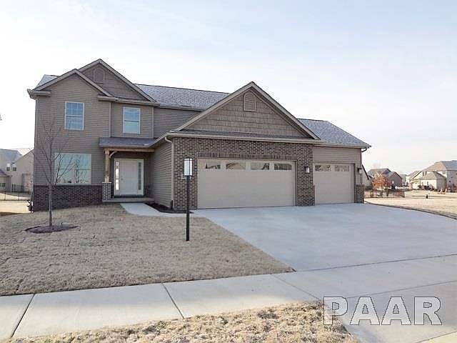 Presented By Rich Gillespie and The Gillespie Group 309-687-4955. Step into this 5 bedroom 3.5 bath Martin Plan. This home is located in Wynncrest Subdivision and hickory grove elementary school district. The main floor offers hardwood floors throughout, Kitchen with granite counter tops and both formal and informal dining areas, living room with gas log fireplace and a nice drop zone with half bath and closet. Upstairs you will find a master suite with a big walk in closet, master bathroom with whirlpool tub, 3 additional bedrooms and an additional full bathroom. The daylight basement is finished with a 5th bedroom and full bathroom and a nice rec room.
