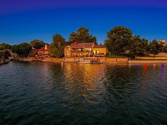 Welcome to your own slice of paradise in the Moorings of Wichita! This stunning property, located in the Valley Center School District, offers a luxurious waterfront living experience with direct water access. Situated on a double lot, this palatial home boasts incredible features that will leave you in awe. Step inside the home and be greeted by the impeccable attention to detail. The living room boasts vaulted and beamed ceilings, creating an atmosphere of grandeur and elegance. Cozy up by the fireplace on chilly evenings, and showcase your favorite literary collection on the built-in bookshelves. The main floor offers captivating lake views from multiple vantage points, ensuring that you'll never miss a moment of the breathtaking scenery. Prepare to be wowed by the kitchen, where a gorgeous brick alcove sets the stage for culinary delights. Abundant cabinet space allows for seamless organization, while an impressive 8 1/2 foot quartz island with a waterfall edge serves as the perfect centerpiece for gatherings and casual dining. An additional full-length eating bar ensures that there's ample space for everyone to come together. The main floor features two spacious bedrooms and two full baths, offering comfort and privacy for both residents and guests. Journey downstairs to the bright walk-out basement, where panoramic lake views beckon you outside. Entertain friends and family at the wet bar with its own eating bar area, or unwind in the inviting family room, complete with a second fireplace. The sliding doors open up to a delightful 250 square foot three seasons room, where multiple sliders allow refreshing breezes to come in. Discover tranquility in the private master retreat, featuring a third bedroom and an attached spa-like full bath. Pamper yourself with heated floors, indulge in the walk-in shower, and revel in the convenience of double basin sinks. The backyard of this exceptional property is a true oasis. Enjoy leisurely moments on the remodeled deck, spanning almost 350 square feet, and revel in the captivating water views. Find respite from the sun on the covered patio space, perfect for al fresco dining or simply unwinding in the shade. The dock runs almost the entire length of the house. The property also features a convenient swim platform, allowing you to fully embrace the joys of lakeside living. Sports enthusiasts will delight in the addition of a golf putting green, providing endless entertainment and the opportunity to sharpen your skills right at home. If you prefer sand between your toes, you'll be pleased to discover a neighborhood beach just moments away. A boat is also available separately. Indulge in the ultimate waterfront lifestyle and make this extraordinary property your own. Don't miss your opportunity to experience the epitome of luxury living in the Moorings of Wichita. Schedule your private showing and come see this gem today before it's gone forever!