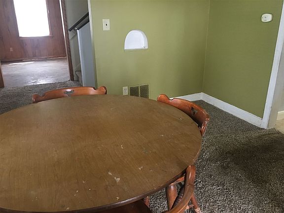 Garage & parking pad in rear. 3 bedrooms, 2 baths, formal dining rm., Large living Rm. with fireplace (non working), hardwood, some with wall to wall carpet over it. Upper Deck off 1 Bdrm. Newer Thermo windows & high efficiency forced air gas furnace. back deck off Din. Rm.,garage & parking pad. Little up-dating for years. 1/3rd. unfinished basement. Being Sold "AS IS-WHERE IS" Cash or Conventional ONLY