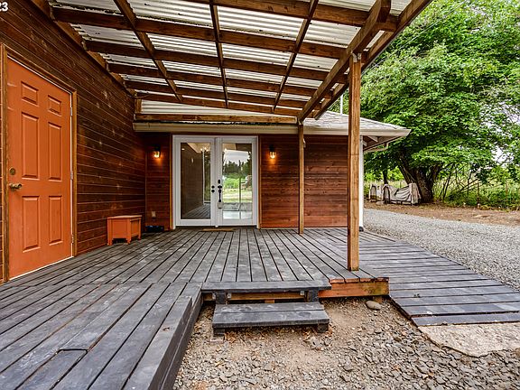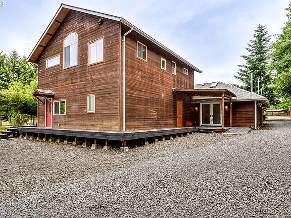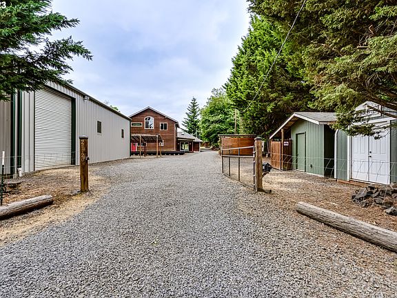 Enjoy the privacy and relaxation of country living, while living just minutes from town. 4J schools. Large, custom, 40X60 steel commercial-grade shop with its own 200amp panel & RV/boat parking. Home boasts beautiful wood finishes, and country views from every window! Set up for extended family living, with a full bedroom/bath/kitchenette space, and its own exterior access. This "flex" space can also be used as a bonus room or separated office space (perfect for the "work from home" set up). Kitchen opens to living space, with ample space for a dining area. Vaulted second floor. 4 bedrooms, plus an office/den with a cute built-in loft bed. Gated entrance. 3 storage sheds, chicken coop/enclosed run, firepit, fully fenced & cross fenced, fruit trees, and lots of gardening space. Covered patio with hot tub (included in sale). Interior laundry/mudroom w/ dog wash. Endless memories await on your own little slice of close-in, country-living heaven!Don't miss the virtual tour link in the listing info!