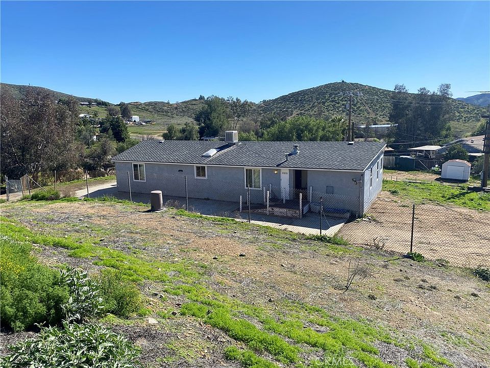 Looking for a home that needs some "TLC" that you can put your sweat equity into and make it your own? Well look no further! This spacious manufactured home sits on slightly over 1 acre of fully fenced usable land just off of Goetz Road on the north end of Quail Valley and features 3 bedrooms and 2 full baths, a large kitchen/family room and a separate dining/living room. If you are looking for land you can utilize for storing all your things and vehicles; having a variety of animals, or to create your own little farm, this is it. The home was built in 1988 and most of its issues are primarily cosmetic. The roof was replaced in recent years as were the original windows with vinyl dual-pane windows and the wood exterior was replaced with stucco. It is on a permanent foundation with a 433 having been recorded so it eligible for FHA and VA loans with some work. Inquire with the listing agent about eligibility for renovation financing. The home features nice views of the neighborhood and the mountains to the west...you'll be able to take in beautiful sunsets from here! Located just a few short minutes to shopping in Menifee or Canyon Lake and just under 10 minutes to either I-15 or I-215. Even with access to all these nearby amenities, it will feel like you're living far away from all the hustle and bustle of the city. If the high prices and high interest rates of the last year have given you the home-buyer "blues," this home might be the perfect cure!