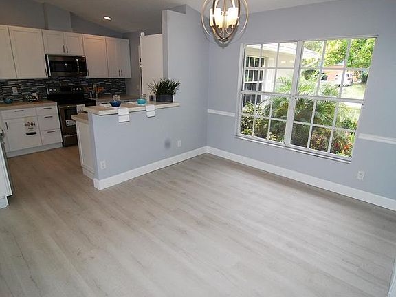 ** PLEASE ENJOY THE 3D INTERACTIVE VIRTUAL TOUR ASSOCIATED WITH THIS LISTING **Here is your opportunity to own a 1400+ square foot, 3 bedroom, 2 bathroom, 2 car garage, lakefront home in Stone Creek. This home has been completely renovated inside and out and is situated on an over-sized lot with a fenced back yard. Sporting a smart great room design, this residence's open floor plan has volume ceilings, split bedrooms for added privacy and high-end vinyl plank flooring in all but the carpeted bedrooms . The beautiful kitchen is open to the living spaces and offers plenty of solid wood cabinetry with soft-close hardware, solid surface counter tops and a full set of smudge proof stainless appliances. The carpeted master bedroom offers a totally updated bath, including vanity, walk-in shower and closet. On the opposite side of the home are the two carpeted guest bedrooms and another completely updated bath with a combination tub/shower. The roofed/screened lanai can be found off the great room and overlooks the fenced back yard and the tranquil lake. Even the garage has been freshly painted and has two storage closets and washer and dryer. This home looks and feels like new! See for yourself by viewing the attached 3D Virtual walk-through tour and/or by making your showing appointment today! This property will not last for long!