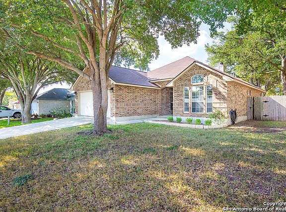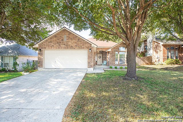 This adorable one story Berry Creek home is not to be missed! The home is nestled in the heart of Berry Creek, a wonderful gated community. With its close proximity to Randolph Air Force Base and I-35, the location is fantastic! You will feel right at home in this 3 bedroom, 2 bathroom open floor planned home. The kitchen boasts granite countertops and stainless steel appliances. The Samsung refrigerator conveys with the house, and was purchased in '22! The backyard has a playscape and a fire pit, inviting you to relax and enjoy your home. There is an irrigation system to keep your lawn green, as well as automatic landscape lighting, and the HVAC system is kept up to date on a regular maintenance schedule. The roof was replaced in 2018. Come and see this fantastic home before someone else snatches it! (Buyer to verify all measurements.)