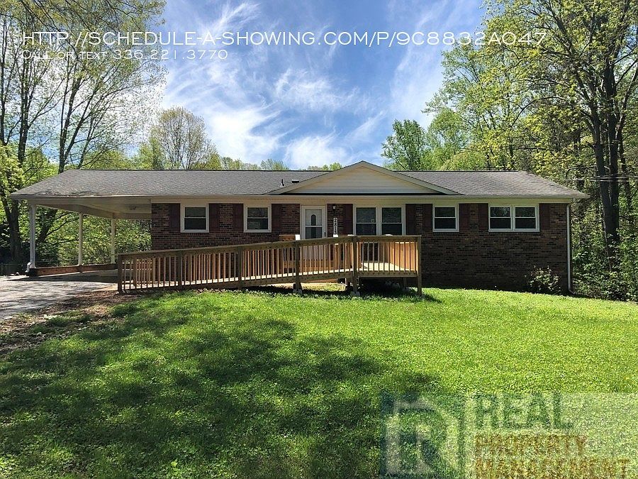 SCHEDULE A SHOWING ONLINE AT: showmojo.com/lh/9c8832a047 Brick ranch 1-level home in N Kernersville with 3 bedrooms and 2 full bathrooms and 1-car carport and fenced back yard. Huge kitchen w/island and living room open concept w/updates. Formal living room also. Appliances include Fridge, stove, microwave, and dishwasher. Finished area in basement includes bonus room and possible 4th bedroom or office - not counted in the square footage. Home has a 1-car basement entry garage but is not accessible to park a vehicle (see pictures). Ample room in basement unfinished area for storage. Recent roof and ADA access ramp on the front of the home. All electric heat pump, public water, septic system. Note: Advertised price is for a 24-month lease. Zoned Schools: Piney Grove Elem / Kernersville Middle / East Forsyth HS. Pets OK Security deposit and Lease administration fee apply You can view this place on your own, at a time that is best for you. To do this copy and paste the following link in your web browser: https showmojo.com/l/9c8832a047 Or call 336-355-6699 to schedule a showing. Marketed by Real Property Management of the Triad. 1 Car Carport All Electric Utilities Bonus/4th Bedroom Fenced Backyard Open Concept