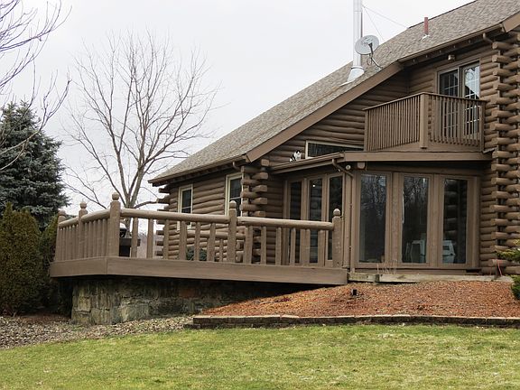 Beautifully updated well insulated log home on 10 acres (includes two parcels) with 30x50 steel outbuilding on concrete, with two heated workshops, full hook-up on concrete for your RV plus an over sized 2-car garage. Updated kitchen with wood cabinetry, Silestone counters, breakfast bar, stainless appliances and convenient first-floor laundry. Light, open living room/dining room with crown molding opens into your rustic Great Room with vaulted ceiling, fireplace, and French doors to enclosed porch, large deck on stone foundation where you can watch nature play. Huge Rec-Room with bar, and barn wood on walls, provides plenty of space for friends to gather. Extra large master bedroom suite with private balcony, 3 baths, quality construction throughout and so much more. Call today and start packing.