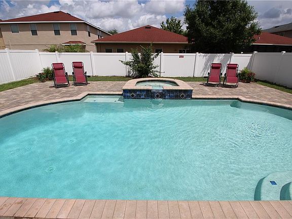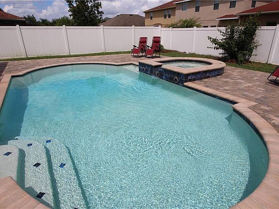 Beautiful Stonebrier POOL home, featuring 4 bedrooms, 2.5 baths, and 2 car garage, is ready for you. Enter the home to the formal living and dining room combination, highlighted by dark laminate wood flooring. The open kitchen features black appliances, including a brand new dishwasher, upgraded 42" cabinets, corian countertops, a large closet pantry, recessed lighting and overlooks the spacious eating area and family room. Upstairs you will find a loft area perfect for use as an office or play area, with 2 oversized built-in storage chests. The spacious master bedroom has an en-suite bath featuring dual sinks and a separate tub and shower. An additional 3 bedrooms and full bath are also upstairs. Exit the great room to the fully-pavered extended covered screened lanai and fully fenced back yard, where you will find a roman style remote-controlled SALT WATER POOL with color-changing lights and SPILLOVER HEATED SPA. Amenities include a community pool, fitness center, playgrounds, basketball court and soccer fields. Stonebrier is served by top-rated schools and offers ease of commute.