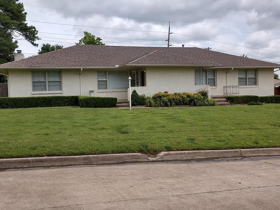 A rare find in Ranch Acres one of the most desirable neighborhoods in the heart of mid-town Tulsa. Immaculate 1800 sq. ft. with 2 bedrooms, 2 bathrooms, 2 living with fireplace (the back den is perfect for a media room), dinning and din-net with pantry. Attached 1 car garage with storage and private patio. Hardwood floors through out except the bedrooms. More parking available. Updated and new paint through out. Close to all major hospitals (Saint John's and Hillcrest), down town, the Gathering place and Utica Square. No pets. No smoking. Tenant pays for all bills. Lawn care included. This is a duplex.