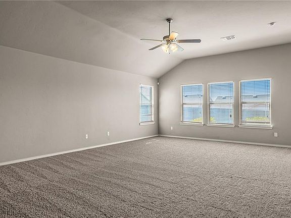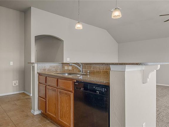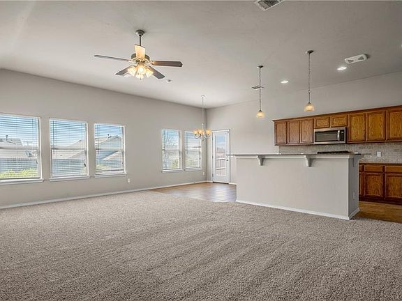 Nearly new with fresh paint and new carpet. This cute three bed two bath home has an open floor plan you'll love. You won't miss a moment of action when you're in the kitchen. The spacious living area will quickly become your favorite space. The covered patios extended concrete pad creates an extra large outdoor entertainment area. The pantry and laundry room shelving maximize storage options in the home. The garage is deeper than typical new builds. The front of the garage has cabinets and space for a workbench. When you get out and explore the neighborhood you'll find sidewalks and nature trails that lead to a stocked pond to the East of the neighborhood. Conveniently located near I-40. Ask your agent for the 3D tour link!
