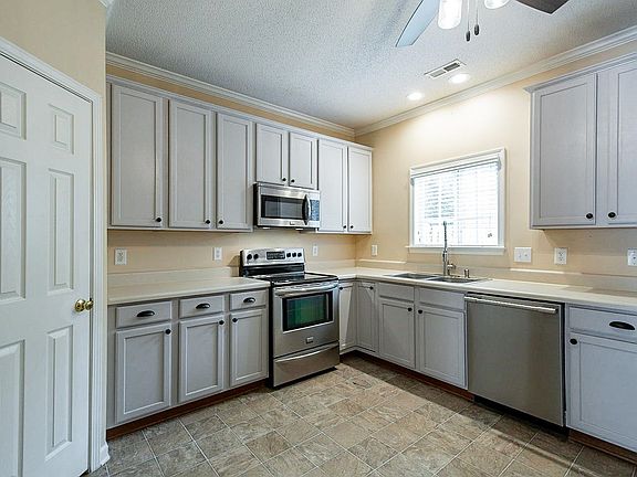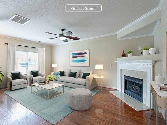 Come see this charming 3 bedroom, 2.5 bathroom home now on the market! You’ll enjoy preparing meals in the gorgeous kitchen with sleek counters, tiled backsplash, stainless appliances, and beautiful spacious cabinetry. Flow into the living room featuring a cozy fireplace and ceiling fan, perfect for entertaining. The main bedroom boasts a private ensuite with dual sinks and walk-in closet that is beautifully hidden by a sliding barn-door. Other bedrooms offer plush carpet, ceiling fans, and sizable closets. This home has been virtually staged to illustrate its potential.