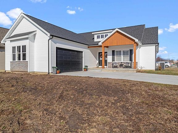 Dressed to impress is this extraordinary 3 bedroom, 2 full bath vinyl sided ranch home perched upon an efficient corner lot in Piper Glen! Custom finishes with some of the most elegant and classy touches that you will find in any currently listed Central Illinois property. Step inside and be welcomed via the double door entry by the gracious open living/dining/kitchen concept with soaring cathedral ceilings, abundant natural light, and fabulous floor space. The kitchen is host to gorgeous dark cabinetry, open concept shelving, top quality stainless appliances, and an expansive center island/breakfast bar. Living/dining area is host to classy waterproof laminate flooring, center eye catching electric fireplace, a rear facing access point, and an open staircase that leads to the full deep unfinished lower level. The bedrooms are nicely split with the master facing the rear and the other two located toward front of property. Relax at the end of a productive day in your master suite that is host to a gorgeous tiled bath host to a double vanity, walk-in shower, and an adjacent walk-in closet. The other two bedrooms are both comfortable in size and feature an adjacent full hall tiled bath. Property also features main floor laundry, covered front porch, 2+ car attached garage, and a full deep finishable basement with nine foot ceilings and an egress window. HGTV worthy property -- A MUST TO VIEW!