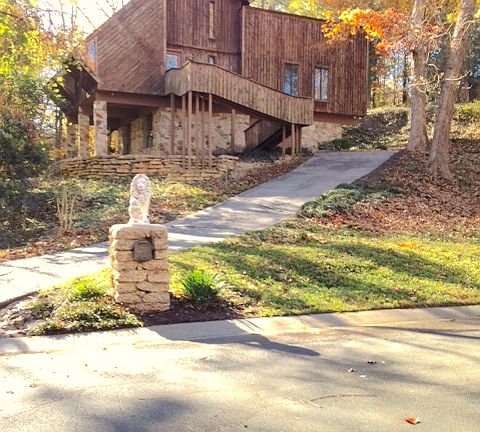 Stone and Cedar chalet on a whole acre of land. No pets, no smokers. HARDWOOD FLOORS, skylights, beautiful new front porch, huge back porch with complete privacy, yet minutes to uptown, YMCA, SouthParkMall and Philips Place Plaza. 3BR house +loft upstairs+recroom downstairs. Cedar wood and stone house unique architectural design with multi-level living space. MAIN FLOOR: 3BRs & 2 BA living room, kitchen. Double french doors from living room open to huge back patio surrounded by the woods. Perfect for grilling, hanging out. Unbelievably quiet. Like retreat in the mountains sort of quiet. TOP FLOOR: Loft on top floor that can be used as a bedroom or as an office. Loft has its own bathroom, shower, and balcony. And skylights. DOWNSTAIRS: two large windows overlook the wooded creek; sliding door opens into the garage. Makes a perfect rec room. HEATED one garage is one car. Outside parking spaces easily accommodate 3 more. Asheville-like mountain retreat feel in one of the hottest neighborhoods in Charlotte. Neighborhood has clubhouse with pool. Excellent neighborhood for walking. lawn care available