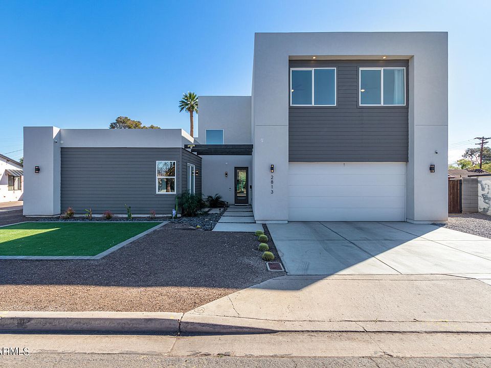 Awesome contemporary home in the heart of phoenix near Arcadia and downtown on a quarter acre lot. You will not find another home offering this value and space in the area at a price point under $1MM. The home has a modern contemporary design, spacious bedrooms and quality upscale finishes, ++ amazing backyard oasis with a private pool. The downstairs features a large primary bedroom with walk-in closet, free standing bathtub and immediate access to the back patio. An oversized secondary bedroom with walk in closet en-suite bath is also downstairs. The living room is an open concept with 20 foot ceiling, excellent lighting and built in surround sound, perfect space for entertaining. Walk-in pantry, separate laundry room and half bath are also featured in the kitchen/ living room area. Enjoy outdoor entertaining in the beautiful backyard, featuring a big patio, artificial turf, a refreshing pool, & loads of privacy. This gem won't disappoint!