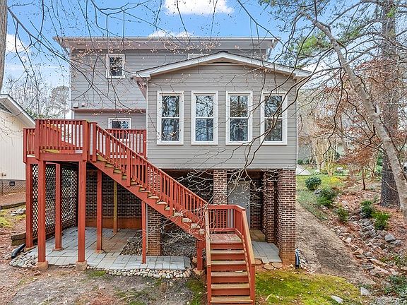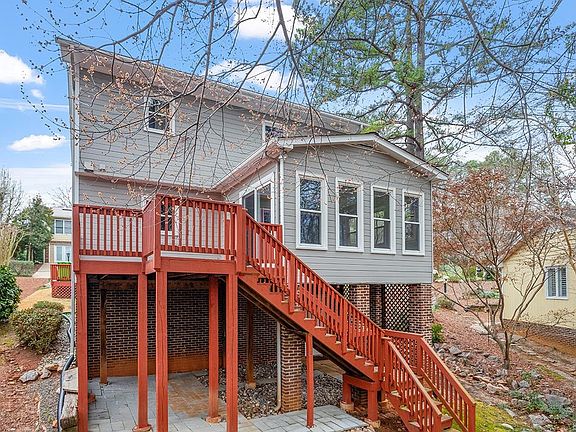 Transport yourself to the quaint neighborhood of Rue Sans Famille and find this adorable home nestled among the trees! This two bedroom two bathroom home has been in the same family since it was built and has been meticulously maintained over the years. Downstairs offers a formal living room, bright white kitchen, dining area and light filled sun room. Head outside to your large deck overlooking the trees. Upstairs you will find two large bedrooms with their own walk in closets and full bathrooms as well as a separate laundry room. To top it off is a huge unfinished basement offering endless possibilities! Perfect location! Just 10 mins to North Hills, 13 mins to Dtown Raleigh & 15 mins to RDU.