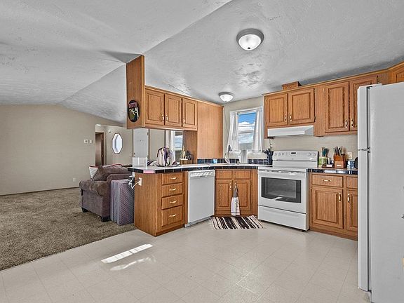 Well-Maintained and Move-In Ready! This home has been lovingly cared for, and it shows. Featuring 2 bedrooms and 2 full bathrooms in a desirable split-bedroom layout, the floor plan feels spacious and inviting from the moment you walk in. The kitchen offers abundant cabinet and counter space, and the southwest-facing covered porch is the perfect place to unwind and take in beautiful sunsets. The fully fenced yard is easy to maintain and includes a built-in fire pit, ideal for relaxing or entertaining outdoors. You won’t have to worry about the essentials—with a new refrigerated central air system, newer roof, water heater, and furnace already in place, you can enjoy comfort and peace of mind for years to come. Best of all, no lot rent—you own the land! This clean, comfortable, and well-cared-for home is ready for its next owner—schedule your showing today!