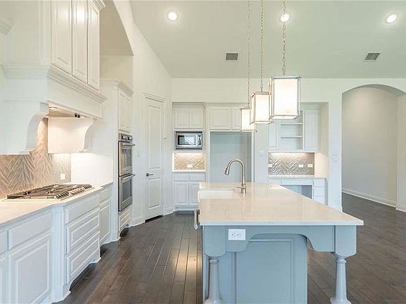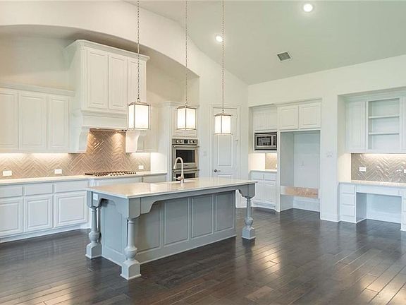 MLS# 13777851 - Built by Highland Homes - Ready Now! ~ Spacious 1 story. Family room with stone fireplace that opens into the kitchen with quartz countertops, pendant lights and a farmhouse sink. Upgrade wood, carpet and tile floors throughout. Master bath with quartz countertop and upgrade tile. Planning desk, mud bench, utility cabinets with sink and extended outdoor living...