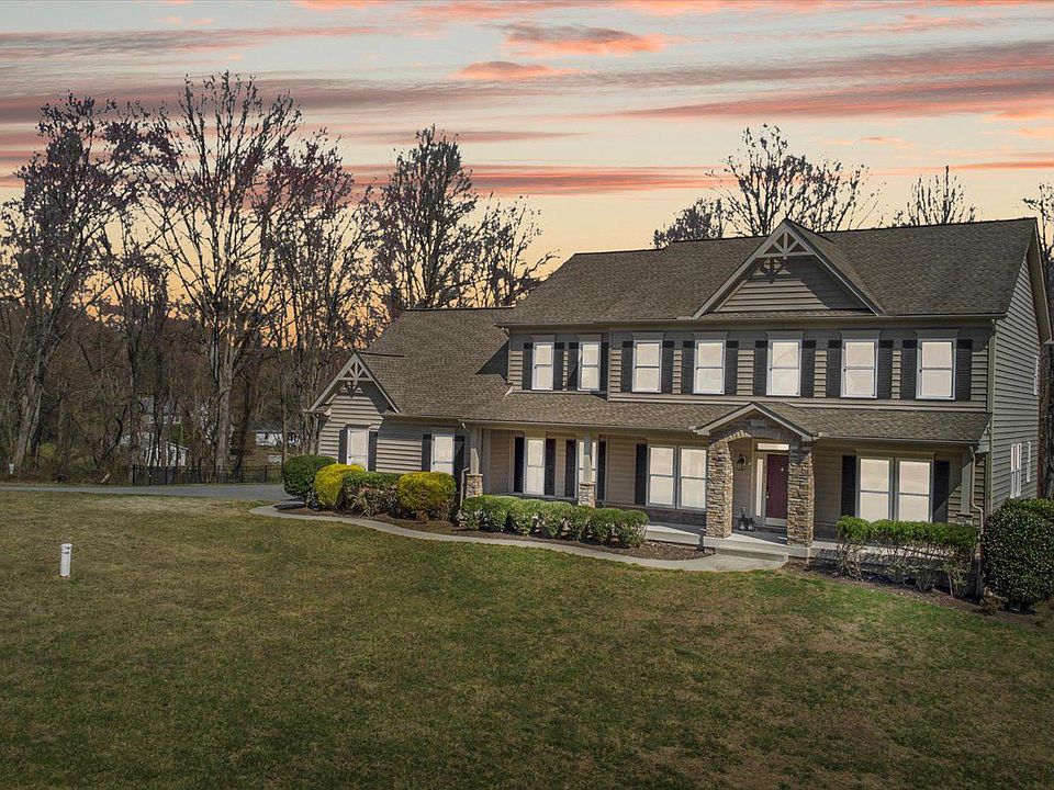 Breathtaking 4BR/3.5BA grand Colonial sits atop a beautifully landscaped yard surrounded by adult trees in the peaceful neighborhood of Derby Farms. Make your way through the neighborhood to the driveway entrance of your new home. The long/wide driveway takes you just outside the three-car garage with a walkway leading to the covered porch boasting stacked stone columns with an entry portoco. Step into an stunning open concept floor plan boasting tons of natural light with gorgeous hardwood flooring throughout. The spacious entry offers a view of almost every living space on the main floor beginning with french glass doors leading to a home office and a large opening into the oversized dining room. Walk through into the heart of the home featuring an amazing kitchen, breakfast room, and spacious family room featuring a gas fireplace with a brick accent wall. The kitchen offers plenty of cabinets, a large walk-in pantry closet, stainless steel appliances including a micro/wall oven combo and gas cooktop, a double sink set into a large island with a raised breakfast bar offering seating and bookcase shelving on either side. Between the kitchen and dining room, on the way to the mud room, is a butler's pantry with a beverage fridge. The mud room gives you access to the three-car garage and features wainscoting with a built-in bench and coat hooks. Pass by the half bath on the way to the stairway leading to the second floor offering a grand primary suite featuring a large walk-in closet, an impressive walk-through closet, and a primary ensuite featuring a large walk-in shower, a soaking tub, and a double sink vanity with a primping station between. The second bedroom is a primary size with a private full bath, third and fourth bedrooms feature a jack-n-jill full bath between them, and the convenience of second floor laundry. The lower level is a blank slate with tons of potential to become additional living space, and features a sliding door to the fenced yard. From the breakfast room step out to a covered deck with steps to the paved patio featuring stone walls and a built-in serving station, ideal when hosting family events. This home is move-in ready and has so much to offer new homeowners. Imagine all this and in close proximity to shopping, restaurants, and commuter routes.