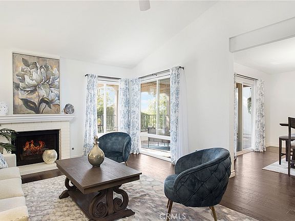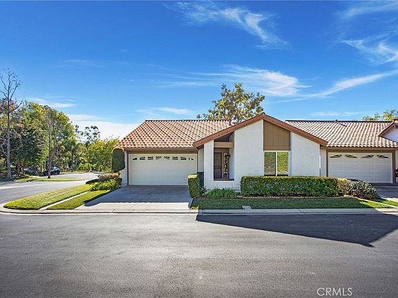 This Casta del Sol Narcisco floor plan offers the perfect blend of luxury, privacy and resort-style living with nearly 1,500 square feet of single-story living space, 3 bedrooms, 2 full baths and a large 2-car attached garage with ample storage. This meticulously maintained property sits on the corner of a single loaded cul-de-sac street offering a wealth of upgrades and features. A spacious and open floor plan, high scraped ceilings, real wood flooring, fireplace with gas self starter, abundance of natural sunlight boosts through the dual paned windows. A remodeled kitchen with custom cabinetry offering lots of customized storage, granite counters and newer kitchen appliances. Bathrooms have been remodeled providing two tiled showers, tile flooring and new fixtures. The two bedrooms are ample in size, primary bedroom has dual closets with customized closet built-ins, large walk-in closet, recessed lighting and ceiling fans, 3rd bedroom serves as an office with access to the side yard private patio area. The oversized brick inlayed backyard patio and side yard patio areas are quiet and private. The community of Casta del Sol is an active 55+ age restricted gated community spread throughout 484 acres with mature trees, beautiful hills and lots of greenbelt areas. Amenities include two recreation centers with pools, spas, club house, tennis, lawn bowling, pickle ball, fitness center, library, indoor shuffleboard courts, vegetable plots, tranquil and well manicured walking gardens, social clubs and planned activities to keep you busy within a feeling of resort style living. This desirable property offers a low property tax rate and NO Mello Roos taxes, a private membership to Lake Mission Viejo to enjoy outdoor concerts, boat rentals, fishing and more, the Oso Creek Walking Trail is within walking distance, conveniently located to Mission Viejo Senior Center, City Hall, medical facilities and shopping centers. Weekly trash pickup and exterior painting is covered by the HOA. Casta del Sol is not just a community but a lifestyle & beautiful place to live.