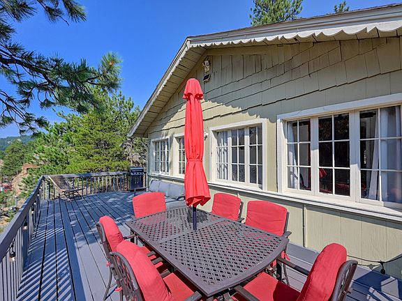 This is a beautiful, historic home above Evergreen main street with lots of windows in a bright sunny location. This home features french windows, an original woodburning fireplace, stackable washer/dryer, a 400 sf deck with downtown and mountain views, and lots of charm. Within walking distance to dozens of restaurants and businesses. Ideal for 1 person or a couple with only 1 car.