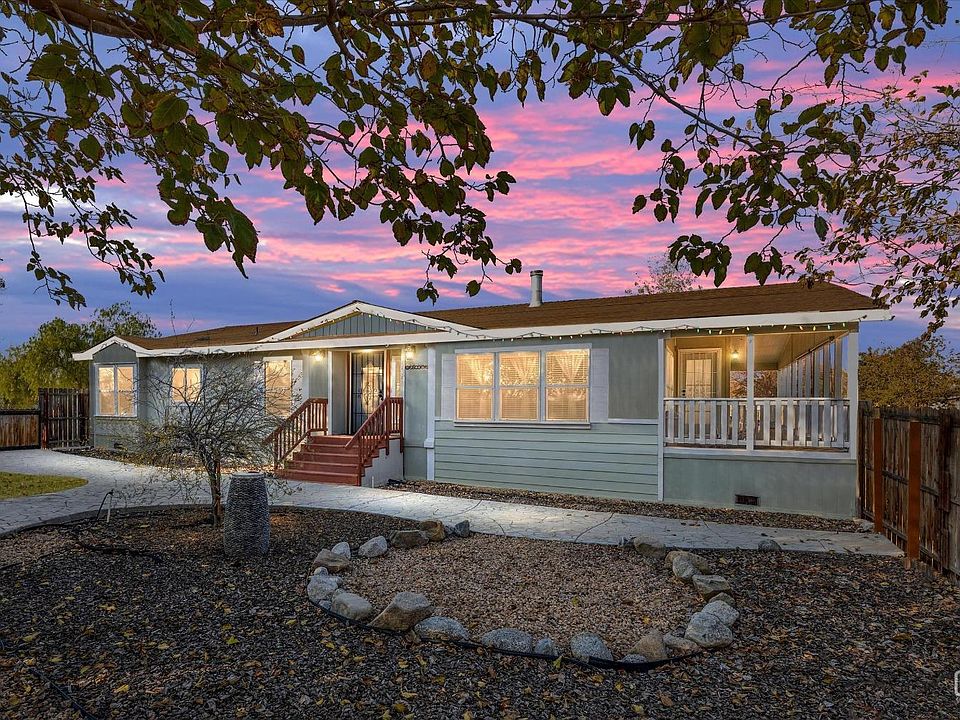 Endless Possibilities. Situated on 1 acre, this 4bd/2ba, approx. 2,335 sqft home and large workshop is a little slice of heaven. Beautiful wood laminate flooring and carpeting throughout. SS appliances, large kitchen area, formal living and dining, including a beautiful fireplace in the great room. The primary suite offers a large soaking tub and separate dual sinks. Indoor laundry room and 3 additional bedrooms complete and make this a great floor plan. Relax under the covered wrap around side porch. Amazing 2,400 sqft workshop, 36x70 horse corral, utility shed, and so much more. Must see to appreciate!
