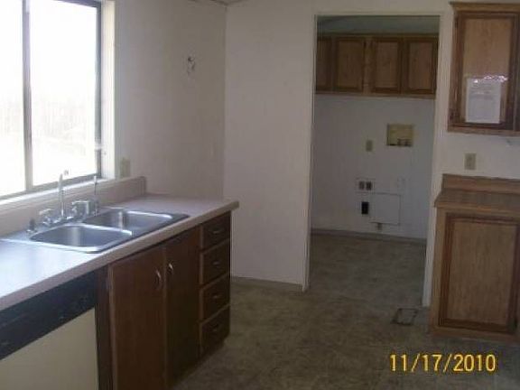 This manufactured home needs some care, but is on a large lot and has plenty of potential. There is a 2 car garage beside the home. Laminate floors in