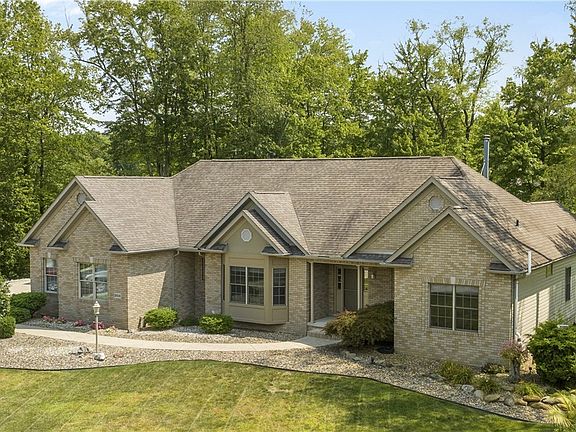 Visit this luxurious sprawling 4 BR, 3 full-bath ranch with vaulted ceilings and eye-opening grand entrance to an expansive living area and open kitchen, all with an array of windows that efficiently provide continuous natural light and embrace the park-like view. Main level laundry room. Quality finishes include Corian, marble, solid oak doors & woodwork throughout, contemporary wall textures and colors, and tile floors. Two natural gas fireplaces enhance the main level great rooms, and a wood-burning soapstone fireplace in a fully finished walk-out basement rec. room, adds efficient heating for the expansive 4280 sq. ft. of usable living space! Wood burning fireplace is surrounded by an impressive rock wall and stone floor, 2 commercial-grade air handlers distribute fire's warmth throughout the home. A full bath, large bedroom, wet bar, and bonus room complete the lower-level finished areas. Two huge unfinished storage areas remain. Large private backyard space with a delineated wetland/pond adjoins the backyard where wildlife activity presents a peaceful break from the daily grind. Motor-sports/hobbyist/auto enthusiasts' dream with room for six cars of heated garage space and 220V for compressor/welder!!! Large enough for boats/trailers and up to 9' tall vehicles. Includes bonus attic loft with staircase. This is a unique home not typically found in a safe and convenient Green schools neighborhood community. Landscaped with attractive river gravel landscape beds surrounding the home and rear park like setting.