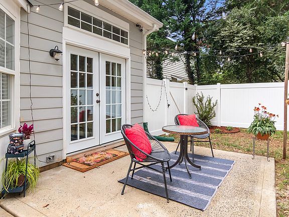 The cozy kitchen & adjacent dining area with French doors leading to the backyard, offer a perfect space for morning coffee or outdoor entertainment. The new vinyl fenced yard is ideal for pets, or enjoying the peaceful space in total privacy. Additional tool shed & storage units can also be utilized for various needs. The location is convenient to l-485 and popular sites such as the airport, uptown & more, all within a 15-min drive.