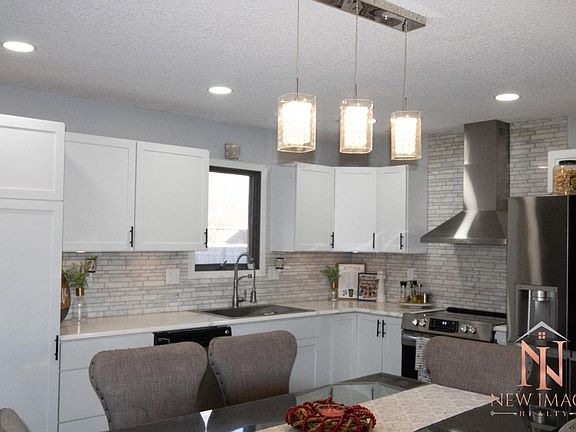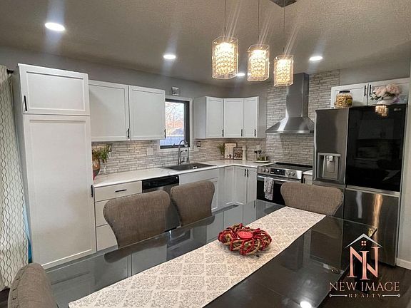 Welcome home to this captivating, updated, move-in ready, 5 bedroom 2 bath brick home. Offering the perfect blend of modern elegance and comfortable living. Step inside to be greeted by an open living space with new flooring throughout the main level, an updated kitchen adorned with a marble backsplash, sleek quartz countertops, stainless appliances, and a built in coffee bar. The oversized garage provides ample storage space and parking. While the fenced in large backyard and covered patio is perfect entertaining and play.