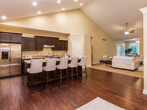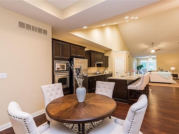 Spacious townhome in the coveted gated community of Druid Hill, and boasts a 3 car garage. Upon entering, be greeted with wood floors and vaulted ceilings. The great room floor plan has tons of room for dining at the island, eat-in kitchen area and formal dining room (could also be used as an office). Main floor master ensuite with jet tub and beautiful custom closet. Access to laundry from the master. And another bedroom and full bathroom are on the main level. The sun room is great additional space for relaxing and reading. TONS more room in the walk out lower level with large rec room with fireplace and wet bar, bedroom and bathroom.