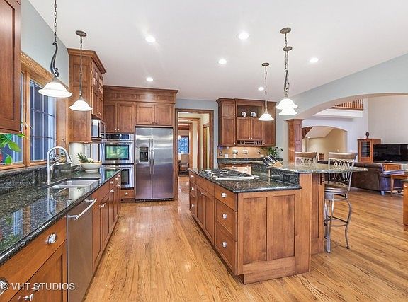 Nestled up high on a hill surrounded by 150 year old oak trees, this ROL Built Custom 7100+ sq ft Home will take your breath away. The architectural details are simply gorgeous. The soaring 21 foot ceiling in family room is a focal point of the home. The floor to ceiling fireplace is beautiful. The gourmet kitchen features Amish custom birch cabinetry, granite, center island, workstation & stainless steel appliances. The dining room is perfect for entertaining featuring waincoating & a coffered ceiling making the room ever so welcoming. The luxury first floor master suite boosts a fireplace, access to the deck, & a spa like bath. The second level features 4 bedrooms, loft area, bonus room and 2 full baths. The custom staircase is by Viking & features custom built ins. The lower level is walk out & totals 2200 sq ft. Enjoy nature from the screened porch or expansive deck. The 3 car garage boosts a 15 x 15 workshop with separate breaker panel. Anderson windows throughout.