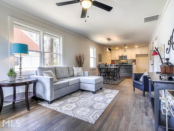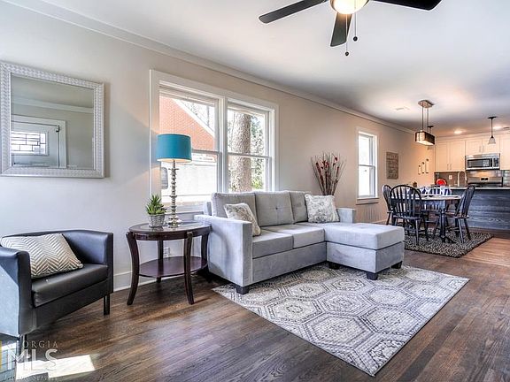 Adorable, renovated brick bungalow with NEW: HVAC, windows, roof, kitchen, baths, plumbing and fixtures + updated electrical! Features include beautiful hardwood floors throughout, living room with brick fireplace and dining area, appealing kitchen with granite counters, breakfast bar, white shaker cabinetry and pantry, master suite with shiplap wall and barn door that opens to a new master bath with custom tile shower, double vanity and walk-in-closet, guest room with custom wood wall, hall/guest bath, mud room, rear deck, nice, flat yard and more! SOOOOO close to Decatur but without the taxes. Museum School Eligible