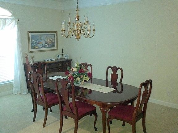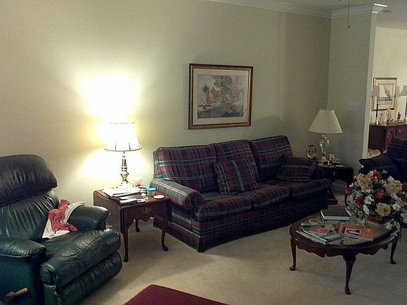 This 3BR/2.5BA brick, well maintained garden home is a must see. It has a large master suite with trey ceiling, separate shower and jetted tub, 2 closets, one being a walk in, separate water closet, and the master bedroom and breakfast room open to a covered patio with a ceiling fan. The back yard is well landscaped and has a storage shed. The foyer, formal dining room, and living room are open and spacious. It has a sprinkler system and security system and a new heat pump that is 2 years old. Trey ceilings are also featured in the living or family room and the dining room. Crown molding enhances the kitchen, breakfast room, family room, and dining room. Custom solid wood cabinets are featured in the kitchen. Both additional bedrooms have walk in closets.