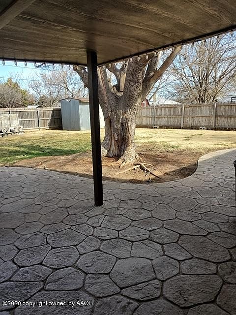 Great buy in Amarillo High area. Updates include Woodbridge windows, dishwasher water heater,roof,and fresh paint in and out. Large room sizes. Good storage in the kitchen. Great covered patio and storage building in the large backyard. Two living areas or formal dining room.
