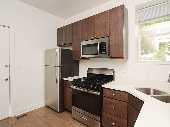 We now offer virtual video tours of all of our apartments! Schedule a virtual tour and rent this apartment from the comfort and safety of your home! Apply online! Comfortable one bedroom, one bathroom in the heart of Logan Square features brand new kitchen with espresso cabinets, quartz countertops, stainless steel appliances, dishwasher, microwave, separate formal dining room, spacious living room, large bedroom, great closet space, new bathroom, in unit laundry, central heat and air, back deck, and pets are welcome. Short walk to Logan Square Blue Line stop, bars, and restaurants! Won't Last Long!