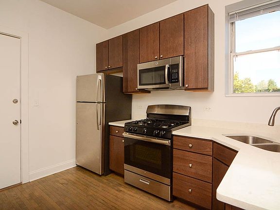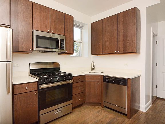 We now offer virtual video tours of all of our apartments! Schedule a virtual tour and rent this apartment from the comfort and safety of your home! Apply online! Beautiful one bedroom, one bathroom in the heart of Logan Square features rehabbed kitchen with espresso cabinets, quartz countertops, stainless steel appliances, dishwasher, microwave, separate formal dining room, spacious living room, large bedroom, great closet space, rehabbed bathroom, in unit laundry, central heat and air, back deck, and pets are welcome. Short walk to Logan Square Blue Line stop, bars, and restaurants! Won't Last Long!