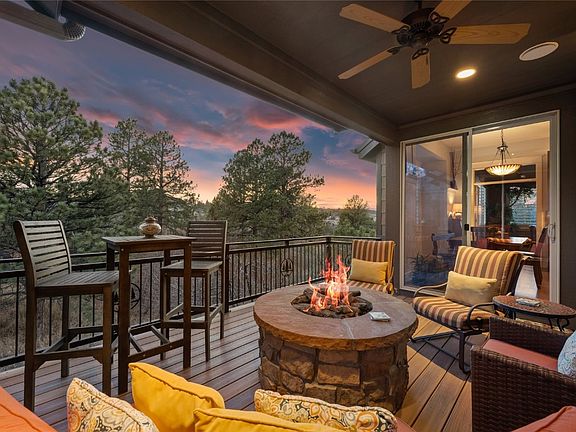 This Home is nestled in beautiful Escavera. Treed setting with amazing privacy! This exquisite custom home offers stunning mountain views! Featuring 4 bedrooms, 3 baths, gourmet kitchen, dining area, butler station & new private custom deck w/ gas firepit! Study w/ spectacular views. Wet-bar w/ dishwasher, wine chiller, bar refrigerator & wine room. Main floor guest retreat/second office. Primary retreat, Rec room, billiard room, game room & media room. Two large guest retreats. Workout room.