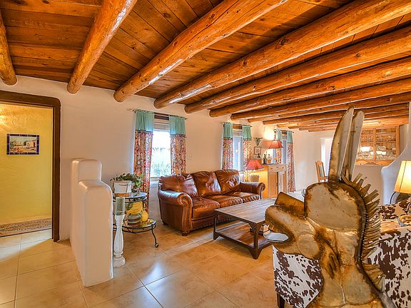 Welcome home! Stunning one of a kind Leon Watson custom Adobe. A MUST SEE! Seated on a gorgeous landscaped corner lot. Single story home with TWO master suites, two living areas, den, office, and or a possible 4th bedroom. Hand cut vegas through out, radiant heat in the original parts of the home. Alder cabinets and stainless steel appliances in the kitchen, custom covered patio with a French Drain System. Custom gas fire place in the den plus 3 kiva fireplaces! Walk-in closet with skylight in one master bedroom, garden tub and separate shower with double sinks. Views that will take your breath away! Several updates to this home including new roof! Come see this beautiful home today before it's gone!