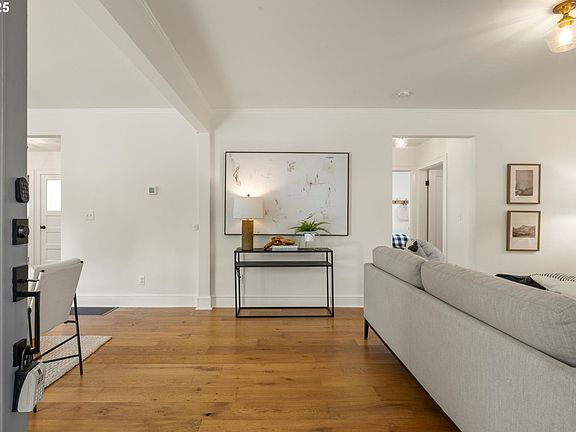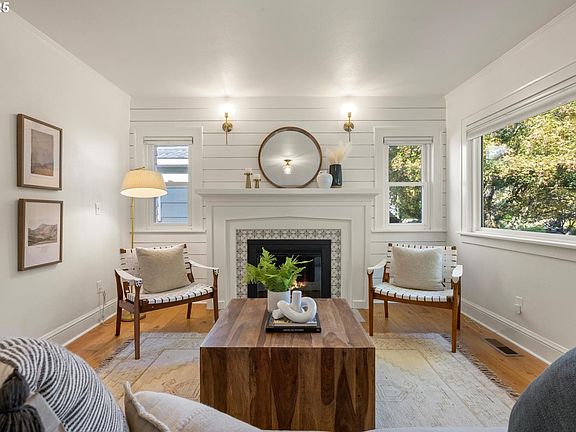 Colonial Heights Treasure-Where Historic Charm Meets Modern Living! Located on a rare, wide, tree-lined street in one of SE Portland’s most desirable neighborhoods, this thoughtfully updated bungalow blends classic charm with modern comfort. This gem is located steps from Division and Hawthorne shops, cafés, parks, and top-rated schools, along with a prime Walk Score of 91 and Bike Score of 95. Step inside and enjoy light-filled living spaces with modern updates for turnkey enjoyment: Milgard windows, luxury vinyl plank flooring, elegant tilework, new 200A electrical panel, fresh paint throughout and privacy blinds. The open-concept main level connects kitchen, dining, and living areas—anchored by a wood-burning fireplace and newer A/C system.The updated kitchen features slab quartz countertops, custom cabinetry, newer appliances, and a cozy coffee nook overlooking the spacious backyard. Two main-level bedrooms offer flexibility, while the light and bright upstairs primary suite includes an en-suite bath and bonus landing ideal for an office or reading space.Downstairs offers a 2,000+ bottle vapor-sealed, temperature/humidity-controlled wine cellar (or oversized storage room), plus a bonus room (potential 4th bedroom) with egress window and custom built-ins—perfect for a media room, guest space, or creative studio.The private, flat, oversized backyard is truly rare for the area—professionally graded with drainage and premium turf, and featuring a tranquil firepit area for year-round enjoyment. The renovated garage offers added flexibility as a gym, workshop, or potential ADU. This is more than a home—it’s a lifestyle rooted in charm, walkability,and community. Move right in and enjoy the best of SE Portland living!