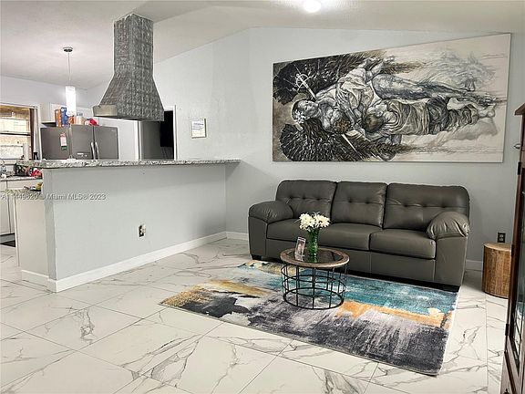 Beautiful 3 bedroom, 2 bath home nicely situated in the desirable community by the Airbase North Gate in Homestead! This home features vaulted ceilings, high windows, spacious open kitchen for entertaining, a double car garage with a long driveway that accommodates parking for 4, and huge gorgeous back yard.NO Association fees. A charming home surrounded by lovely open green space! Near the turnpike, close to Publix, Home depot, and Wal-Mart.