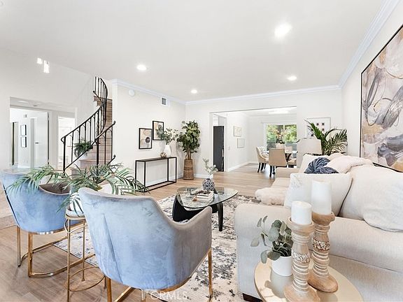 Rare opportunity to own this gorgeous, completely renovated, 5 bedroom Madrid Del Lago home in North Mission Viejo. The home is situated on a quiet cul-de-sac street that is walking distance to Lake Mission Viejo. The functional floor plan of this home includes a formal living & dining room and an open concept kitchen overlooking the family room with a cozy fireplace. The oversized master bedroom has a large sitting area, private balcony and an adjoining renovated master en-suite. There is a large bedroom and full bathroom on the main floor which is perfect for an office or guest room. The entire house has been completely renovated with beautiful new modern finishes including new dual pane windows, new sliding doors, new flooring, new fresh paint, new baseboards, new crown molding, new quartz countertops and a brand new kitchen with an extra large island and more. It is located in the top rated Capistrano School district and includes Lake Mission Viejo privileges. The HOA is low and there is no Mello-Roos.