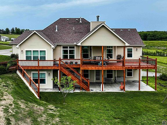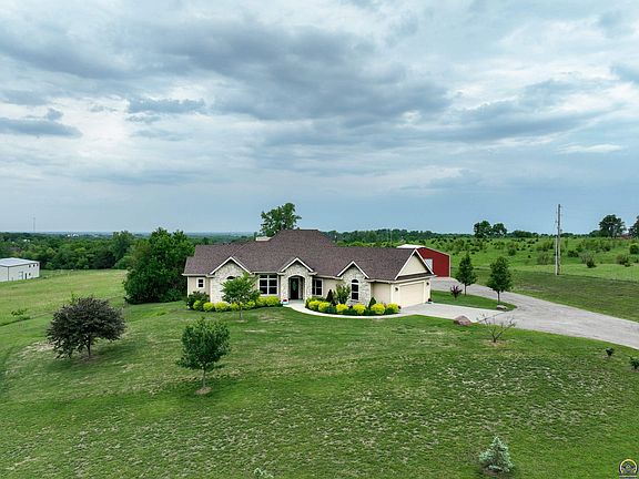 Welcome to this beautiful ranch home, on 9.58 acres, just one mile north of St. Marys. This charming zero entry property is perfect for easy access and convenience. Step inside and you'll immediately be impressed by the beautiful hardwood cherry floors, which flow seamlessly throughout the house. The 10-foot ceilings create a grand and spacious feeling. The kitchen is a chef's dream, with Cambria quartz countertops, stunning hardwood cabinets, and stainless steel appliances. Enjoy your mornings on the large back deck, or gather with friends and family in the elegant dining area, perfect for entertaining. The living room is the heart of the home, with a large wood-burning fireplace that creates a cozy atmosphere, perfect for those chilly winter evenings. The fully finished walkout basement offers even more space for relaxation and recreation, with a walk-off patio for outdoor entertainment. And just out in the backyard, enjoy your own producing vineyard! This property also includes a 30 x 40 steel outbuilding that is perfect for all your shop needs. With water and electricity already installed, this building can be used for a variety of purposes. The concrete floors and insulated walls make it a great space to work on projects year-round. Schedule your showing today!