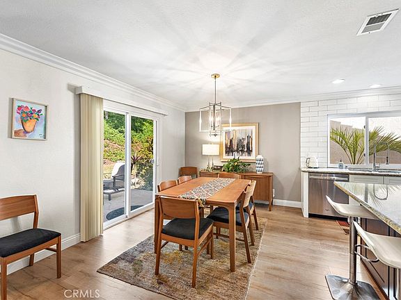 Absolutely model perfect home on small cul-de-sac with secluded private location. This is a Narciso floorplan with 3 bedrooms, 2 baths, and 1472 square feet of luxury. The home features a newer front door, wide planked laminate flooring throughout. Newer carpet in the two bedrooms. The third bedroom is currently set up as an office. Newer dual pane windows and sliders throughout, newer paint, newer interior doors. Completely remodeled kitchen with granite counters, stainless steel appliances, self-closing drawers and contrasting cabinet colors. Stylish pendant lights above the island ads to the overall contemporary look of this kitchen. The kitchen is opened to the dining area and living room to create the open floorplan. The living room, dining room and kitchen look out over the enlarged inviting, flagstone covered patio. The patio offers privacy with ample space for entertaining. The spacious master bedroom is located on the back side of the home, featuring vaulted ceiling, ceiling fan and a stunning master bathroom. The bathroom's walk-in shower has gorgeous tile detail. Custom double vanity. There are 2 master closets with mirrored sliding doors and closet organizers. The guest bathroom has been completely remodeled as well with lovely tile work. There is a side yard, perfect for a dog. A beautiful place to call home. Community is spread throughout 484 acres with mature trees & beautiful hills. Association offers two recreation center which offers pool, spa, club house, tennis, gym, paddle tennis, shuffleboard courts, billiards & much more. Trash pickup & outside painting are covered by the association. This is a 55+