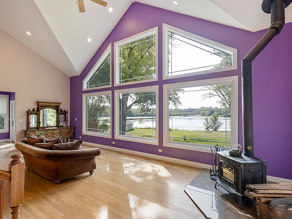 Are you looking for a relaxing environment to call home? Enjoy pristine views of the water and cool summer breezes from your personal sanctuary. Beautiful WATERFRONT home with almost 83 ft of frontage. Stunning views of the water from a wall of windows. Soaring ceilings in the living room make this a show-stopping space! You won't be able to pull your eyes from the view. Relax and unwind with an adult beverage from your wet bar as you sit in the expansive living room soaking up those views. In the winter months, enjoy the ambiance of a wood burning stove as you watch snowflakes fall from the comfort and warmth of your home. You'll feel like you are living in a snow globe. Enjoy unobstructed lake views from the open concept kitchen as well. It'll be a pleasure to entertain family and friends in this great space with "miles" of counterspace, a gorgeous and huge island with glass front shelves. The kitchen cupboard space is incredible, with no shortage of storage space. An inspired kitchen that will inspire your inner chef! You've also got a dedicated dining space that is open to the kitchen and living room with a sliding door leading to the deck for great indoor outdoor dining options. You'll even love the laundry room with lots of folding space and lovely cabinets to keep organized. Desirable MAIN LEVEL BEDROOM AND FULL BA make this a great multi-generational layout if you are caring for an elderly parent. Basement is well on its way to being finished, including a full BA option (partially constructed, but not counted in bathroom count). Radiant heated floors in the basement as well. While this home is 2 BR, there are extra spaces in the home with 2 lofts, a HUGE room connected to the primary suite, and lots of room in the above grade basement with more views of the gorgeous waterfront. There's even a dog-washing station in the basement. The primary suite has a spacious bedroom, the HUGE bonus room above the garage, a loft space to sit and enjoy the views, and a large primary bathroom with walk in shower, soaking tub, double vanity, and extra storage. Outside you will be sure to enjoy the stone patio with built in fire pit as well as kayaking, canoeing, paddle boarding in the summer or ice skating in the winter. A tranquil water environment will steal your heart as you feel yourself relax in your personal retreat. Estate sale. Home is being sold "as is".